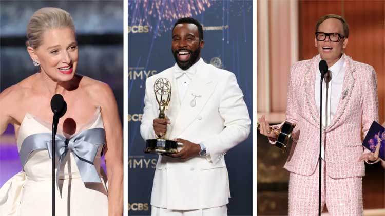 Apple TV’s Severance leads the night with the most nominations, joined by fellow frontrunner The Studio. Among the early winners are Seth Rogen (The Studio), Jean Smart (Hacks), Katherine LaNasa (The Pitt), Tramell Tillman (Severance), and Britt Lower (Severance).