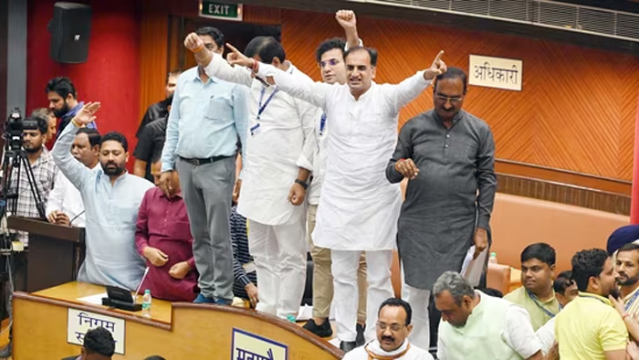 Following this, BJP hit out at the AAP and Mayor, and raised slogans such as “Mayor hosh me aao (Mayor comes to senses)” and “standing committee ka election karwao (Hold standing committee election)”.