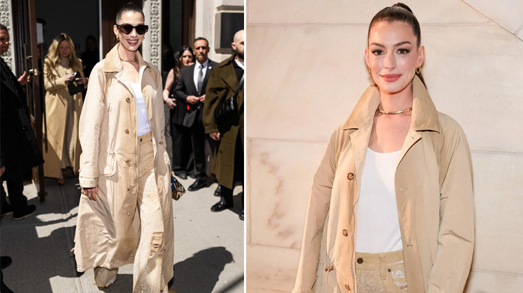 Influencer and stylist Charlotte Groeneveld shared a video capturing Anne Hathaway enjoying the Ralph Lauren Fall 2025 fashion show. The actor was seen wearing sequinned, ripped trousers, which she paired with a classic white tank top and a khaki trench coat. She completed her look with stiletto sandals and gold jewellery, tying her beautiful hair into a sleek ponytail.