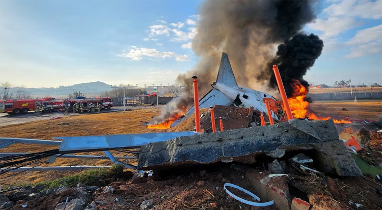 The crash occurred as Jeju Air flight 7C2216, carrying 175 passengers and six crew on a flight from the Thai capital Bangkok, was landing shortly after 9 a.m. (0000 GMT) at the airport in the south of the country, South Korea’s transport ministry said.