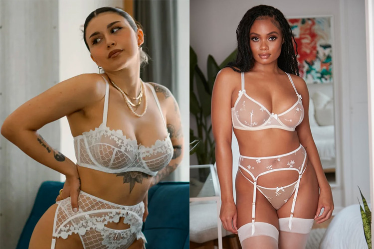 We fell in love with the ivory bridal looks from the fishnet and embroidery Baroque Bondage collection, which includes a sheer balconette bra that comes in cup sizes from A to H, and a Rihanna-approved fishnet teddy.
