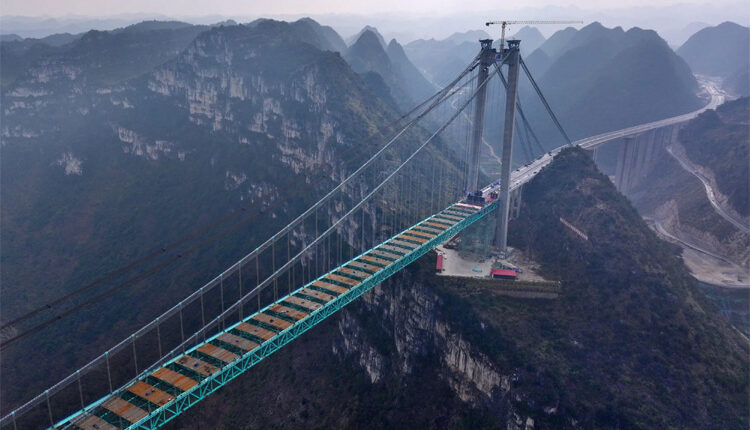 China’s Huajiang Grand Canyon Bridge is set to open this year, becoming the world’s tallest bridge at 2050 feet high.