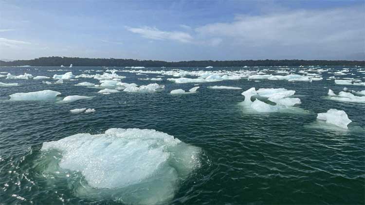 Oceans absorb the majority of excess heat generated by global warming. Warmer waters erode marine-terminating glaciers and ice shelves from below, destabilising ice structures and hastening their collapse.