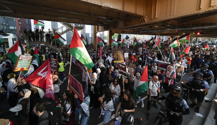 Organizers of Wednesday’s demonstration drew on the Chicago area’s Palestinian community, one of the largest in the country, by bringing buses from suburban mosques.