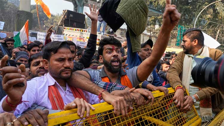 In New Delhi, protests led by the Vishwa Hindu Parishad (VHP) and Bajrang Dal saw hundreds of demonstrators carrying saffron flags gather near the heavily secured Bangladesh High Commission. Police deployed around 1,500 personnel and multiple layers of barricades, stopping protesters roughly 800 metres from the mission.