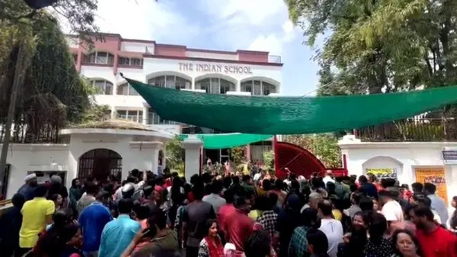 Another video showed the outside of the school – identified by ANI as The Indian School in Delhi’s Sadiq Nagar – and dozens of parents, reporters, and other people waiting outside.