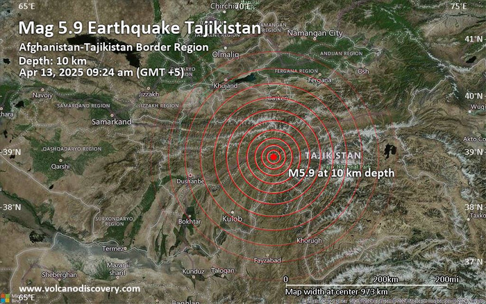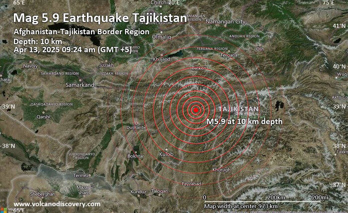 Earthquake of magnitude 5.9 strikes Tajikistan