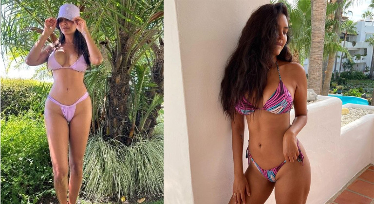 She recently dropped another head-turning look on Instagram in a sexy lavender bikini set, which she paired with a matching cap. The actress looked breathtakingly gorgeous as she stood in front of lush green trees, flaunting her curves.