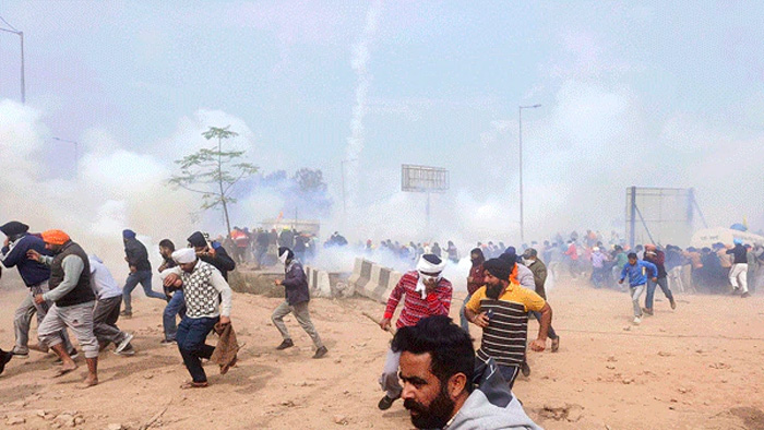 Visuals showed huge plumes of smoke – making visibility almost impossible – and hundreds of farmers and their supporters, as well as media personnel, running helter-skelter to the sound of tear gas shells being fired.