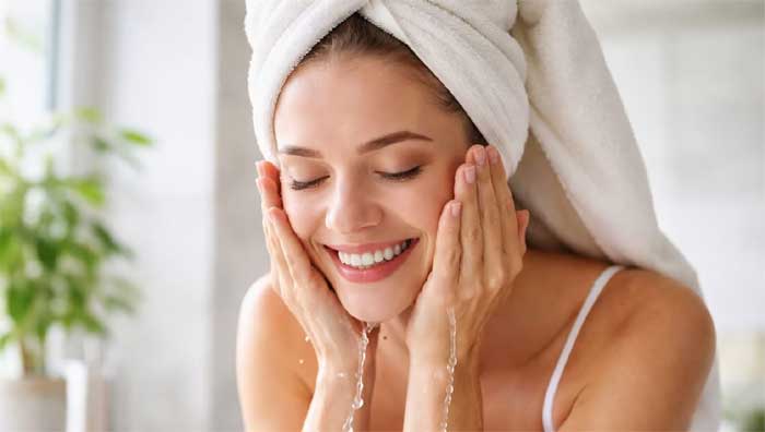 उठने के बाद माइल्ड फेस वॉश से चेहरा धोएं। यह रातभर जमा तेल और पसीने को साफ करता है।