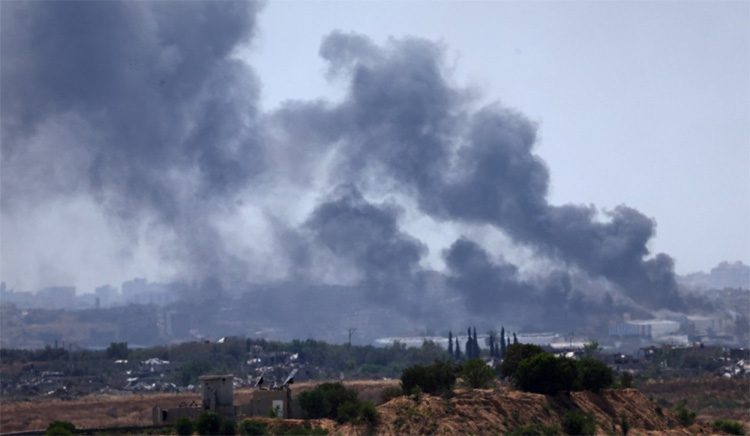 In southern Gaza bordering Egypt, thick smoke rose over Rafah, where an escalating Israeli assault has sent hundreds of thousands of people fleeing from what was one of the few remaining places of refuge.