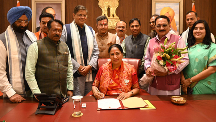 Six MLAs, Parvesh Sahib Singh Verma, who defeated former chief minister Arvind Kejriwal, Ashish Sood, Manjinder Singh Sirsa, Ravinder Indraj Singh, Kapil Mishra, and Pankaj Singh were also sworn in as ministers into Gupta’s Cabinet.
