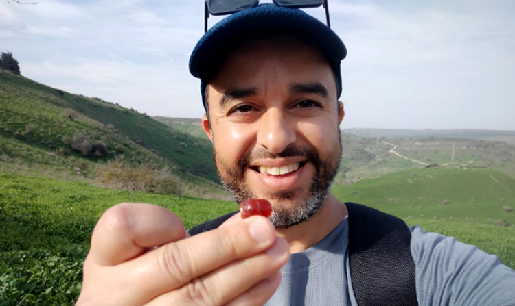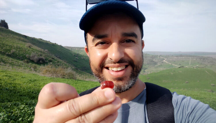 Erez Avrahamov, a 45-year-old resident of Peduel, recently hiked the Tabor Stream Nature Reserve in the Lower Galilee in Israel, and to his surprise, found a scarab dating back to the First Temple period – about 2,800 years ago. “I had a two-day leave from the military and decided to take advantage of the sunny weather for a trip,” Avrahamov said. “During the trip, I saw something sparkling on the ground. At first, I thought it was a bead or an orange stone. After picking it up, I noticed engravings on it resembling a scarab. I reported the amazing find to the Israel Antiquities Authority.”