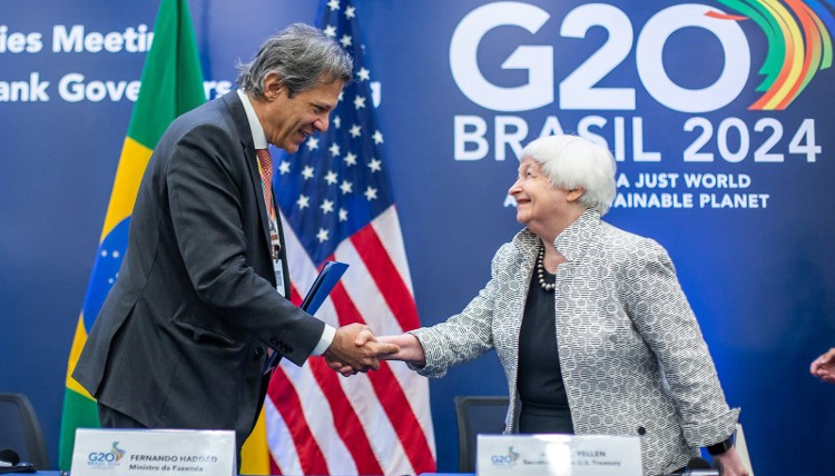 Brasil’s Finance Minister Fernando Haddad and U.S. Treasury Secretary Janet Yellen led the signing of a landmark agreement during the G20 Finance Track ministerial meeting in Rio de Janeiro.