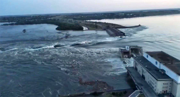 An attack on the major Russian-held dam in southern Ukraine unleashed a torrent of water that flooded a small city, inundated two dozen villages and sparked the evacuation of 17,000 people.