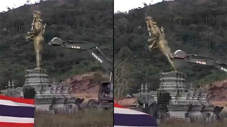 The statue, reportedly built in 2014, was allegedly demolished by the Thai military earlier this week amid ongoing tensions between Thailand and Cambodia. A video showing military engineers using a bulldozer to topple the statue circulated widely on social media, triggering outrage.