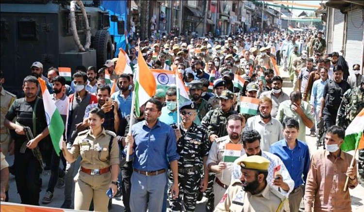“Today entire J&K is participating in Tiranga Yatras. The Tricolour is flying high and streets are filled with enthusiasm,” Sinha said during the rally.