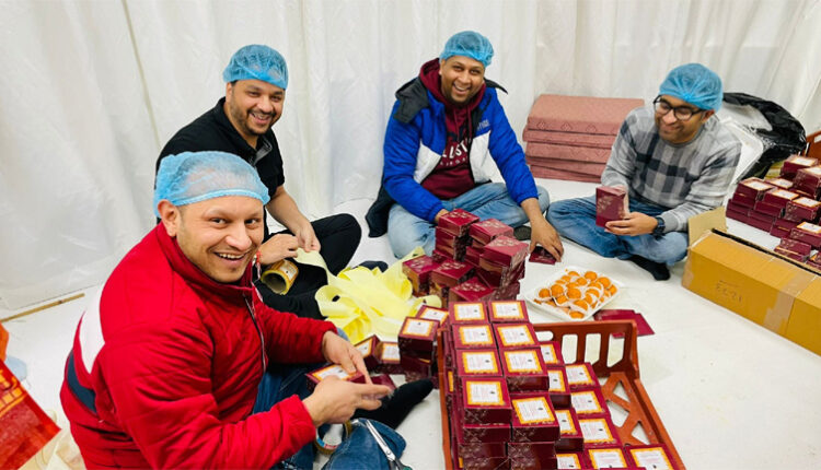 Exciting news – 250 KG of delicious Laddus and Akshat Rice are being packed for distribution among devotees.