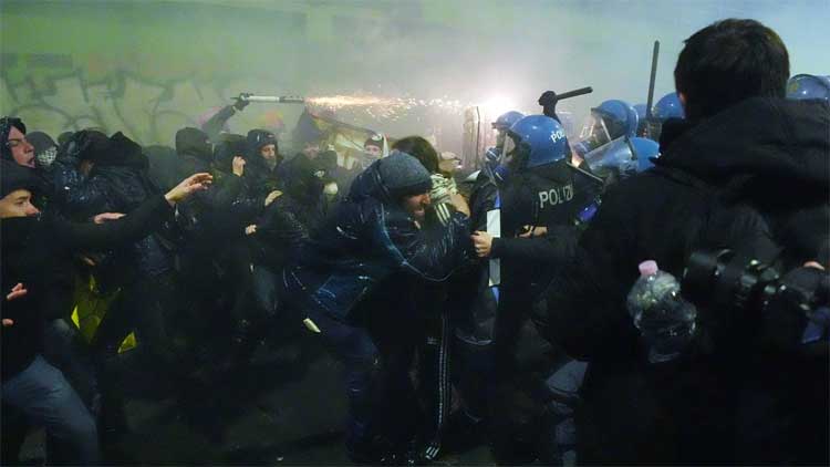 Italian Police Clash With Protesters Near Winter Olympics Venue in Milan