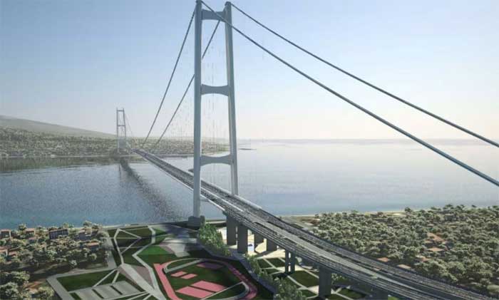 Spanning nearly 3.7 kilometers (2.2 miles) with a suspended central span of 3.3 kilometers (over 2 miles), the bridge would eclipse Turkey’s Canakkale Bridge by over 1,200 meters to become the longest suspension bridge in the world.