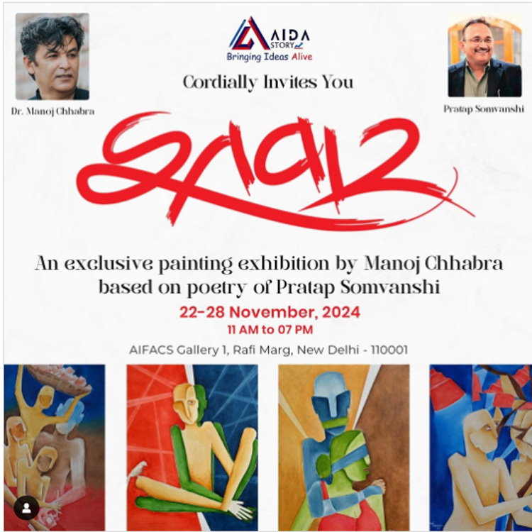 ” For the first time, this show blends art and poetry, bringing together the masterly strokes of Manoj Chhabra, Sahitya Akademi Awardee, and poets’ heartbeats in the verses penned by Pratap Somvanshi, the Managing Editor of Hindustan. The exhibition will be held from November 22 to 28, 2024.