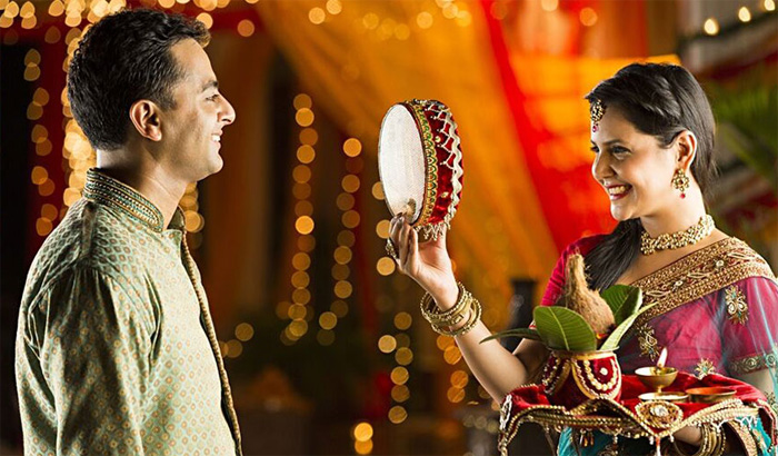 According to the rituals of Karwa Chauth, the married woman has Sargi – a pre-dawn meal on that day before sunrise. Then she keeps fast for the entire day till the moon is seen in the sky. Then after moonrise, the woman sees the moon and then accepts water and food from her husband to break the fast.