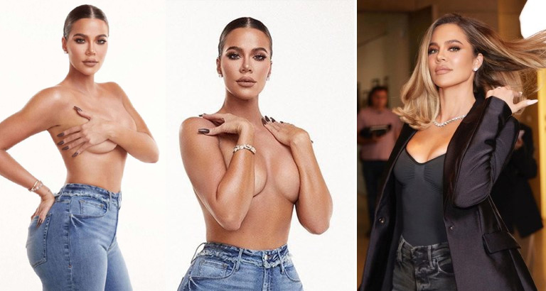 Khloe Kardashian goes completely topless as she poses in skintight jeans for Good American ad