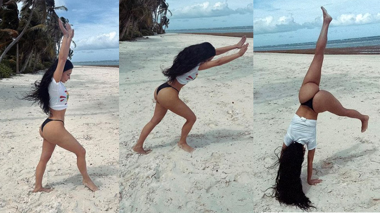 Kim Kardashian Demonstrates Her Gymnastics Skills Doing Cartwheels in Her Thong Bikini