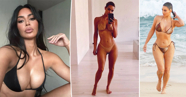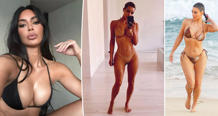 Kim Kardashian, 42, was a sight to see in her latest Instagram photo. The reality star rocked a nude bikini from her SKIMS line as she confidently posed and took a selfie in the mirror of her large bathroom. She had her hair pulled back into a bun and had no shoes on.