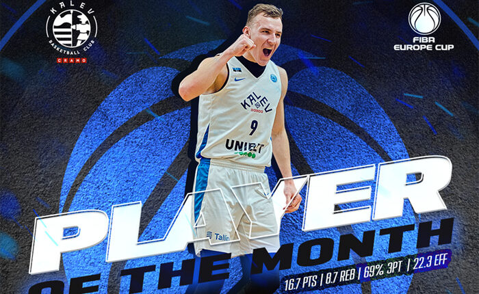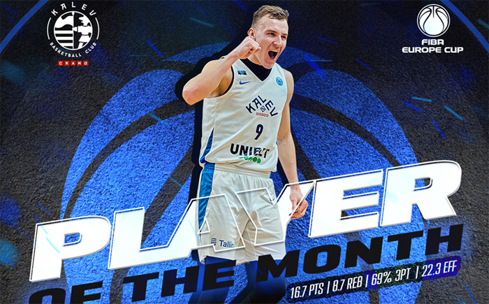 The 22-year-old Estonian forward averaged 16.7 points and 8.7 rebounds on the month, while shooting an incredible 69 percent from three-point range.