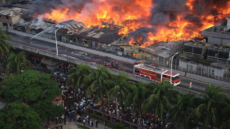 Massive fire breaks out in Bangabazar cloth market in Bangladesh’s Dhaka