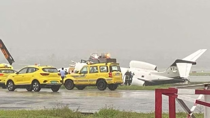 नागरिक उड्डयन महानिदेशालय (डीजीसीए) ने कहा कि शाम करीब पांच बजे घटना के समय भारी बारिश के साथ दृश्यता 700 मीटर थी. विशाखापत्तनम से मुंबई के लिए संचालित वीएसआर वेंचर्स लियरजेट 45 विमान वीटी-डीबीएल परिचालन उड़ान में छह यात्री और दो चालक दल के सदस्य थे.