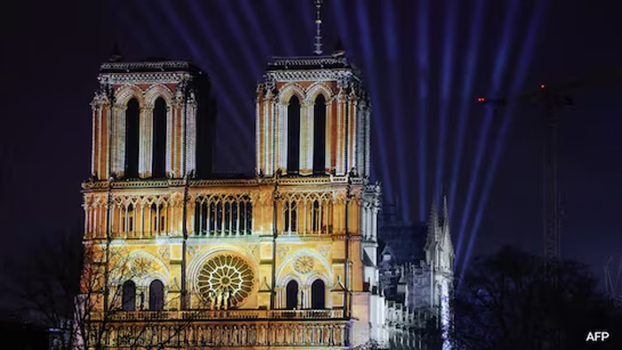 Held up as an example of French creativity and resilience by President Emmanuel Macron, Notre Dame’s renaissance so soon after a 2019 blaze that destroyed its roof and spire comes at a difficult time for the country.