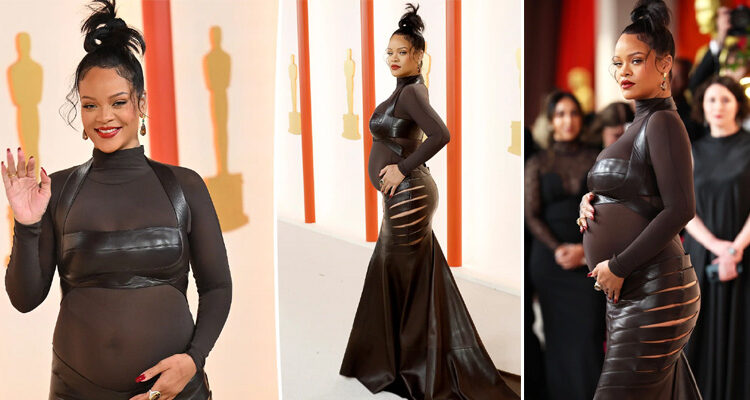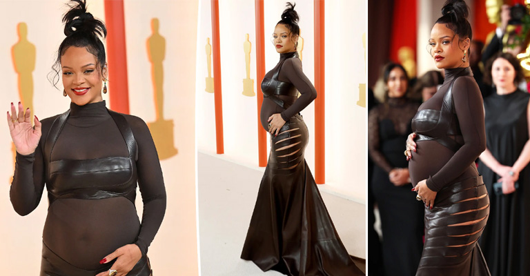 Rihanna shows off her baby bump at the Oscars 2023