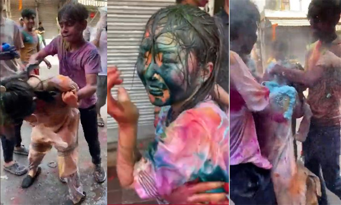 In the viral video, the men groped her and smeared colours on her. One man even smashed an egg on her head. The woman, as seen in the video, found it hard to leave the gang of men. But she continued saying ‘bye’ ‘bye’ in an attempt to exit that group. She smiled once on the camera and as one of the men again touched her, she slapped him and left the place.