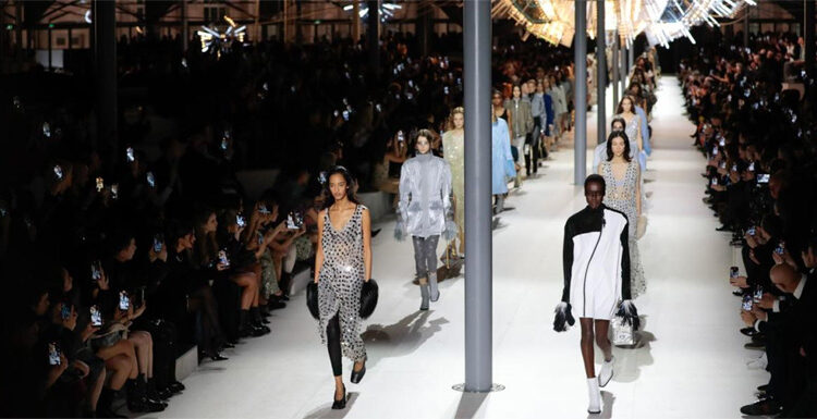 Amid a giant futuristic iridescent spiked ball and inside the oldest courtyard of the Louvre, Ghesquière unveiled an ambitious collection fusing seasonal trends which yet also bore “witness to a decade of fashion.”
