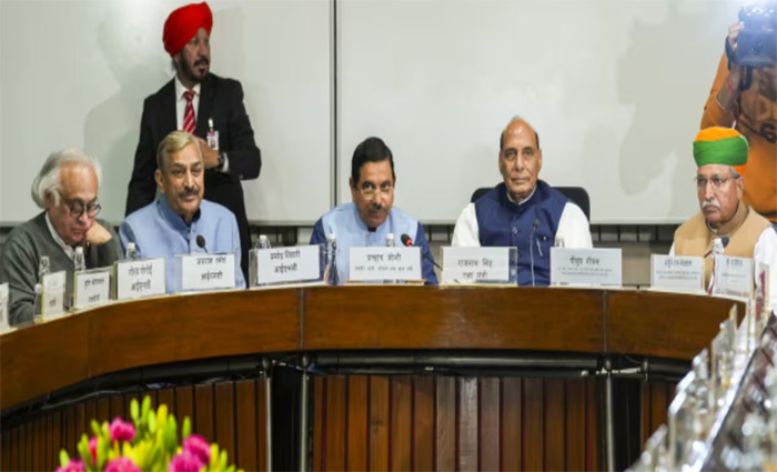 संसद का शीतकालीन सत्र सोमवार से शुरू होगा. इससे पहले राजनीतिक दलों के नेताओं ने शीतकालीन सत्र के एजेंडे पर चर्चा के लिए शनिवार को यहां बैठक की. इस दौरान विपक्षी नेताओं ने पुराने आपराधिक कानूनों के स्थान पर लाए जा रहे तीन विधेयकों के अंग्रेजी में नाम, मंहगाई, जांच एजेंसियों के ‘‘दुरुपयोग’’ और मणिपुर पर चर्चा की मांग की.