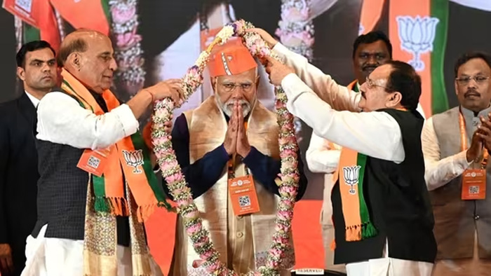 Crediting the Modi government for putting the country on the path of security and prosperity, the resolution said the BJP-led National Democratic Alliance (NDA) under his leadership is poised to “surpass the target of 400 seats” in the upcoming general elections.