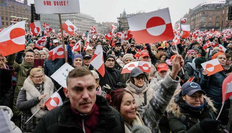 “I’m here to support the Greenlanders, who are going through a very hard time right now,” said Kristian Boye, 49, wearing one of the spoof hats. “They are being threatened with having their country invaded. I think it’s totally unacceptable.”