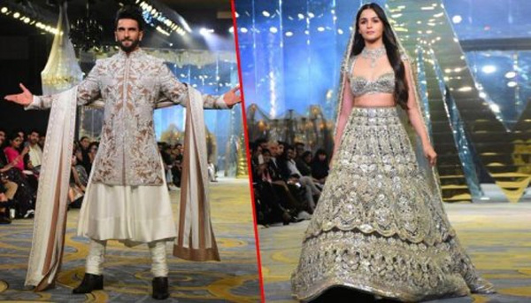 For the event, Alia wore a black and silver lehenga, looking like the perfect bride with her long dupatta and matching jewellery. Ranveer Singh stunned everyone with his traditional attire–a sherwani and a glittering jacket. The duo walked the ramp together holding hands and laughing as well as interacting with the guests. They also posed together.