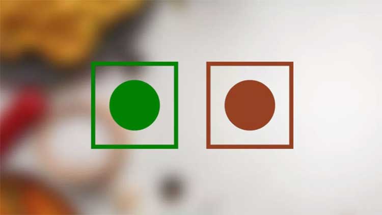 अगर पैकेट पर हरा निशान है, तो इसका मतलब है कि उस प्रोडक्ट में कोई भी जानवरों से प्राप्त चीज (जैसे मांस, मछली, अंडा आदि) नहीं है। ये पूरी तरह शाकाहारी है।
