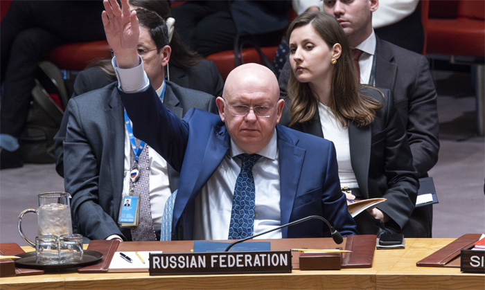 Russia on Wednesday vetoed a UN resolution sponsored by the United States and Japan calling on all nations to prevent a dangerous nuclear arms race in outer space, calling it “a dirty spectacle” that cherry picks weapons of mass destruction from all other weapons that should also be banned.