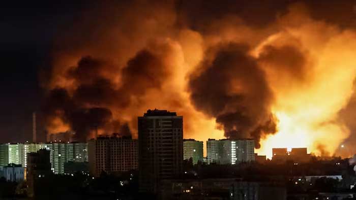 Russia launched an overnight drone strike on Kyiv, causing debris from downed drones to ignite a fire on the roof of a 16-story residential building, Ukrainian capital’s mayor Vitali Klitschko said on Sunday.