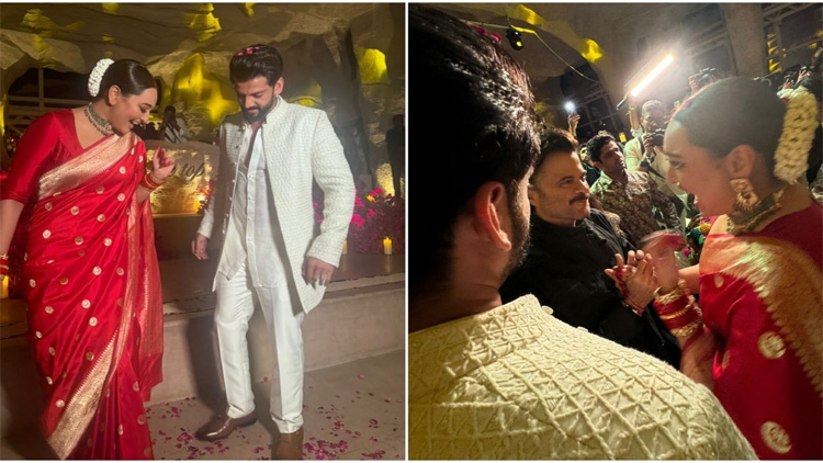 Actors Sonakshi Sinha and Zaheer Iqbal married on Sunday. Now, a new video has emerged of the couple’s first dance. In the clip, the duo grooved to Rahat Fateh Ali Khan and Momina Mustehsan’s song Afreen Afreen.