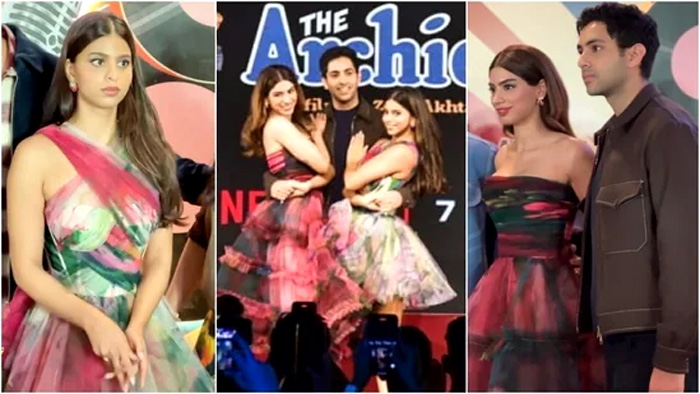 Suhana Khan and Khushi Kapoor look radiant in printed dresses as they promote The Archies with Agastya Nanda and others