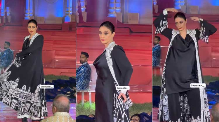 The 54-year-old actor turned heads in a dramatic black-and-white ensemble featuring black trousers, a cowl-neck tunic and a long coat embellished with intricate silver hand embroidery and shimmering crystals. A bold red lip, kohl-rimmed eyes, a sleek high bun and glossy black loafers completed her powerful, elegant look.