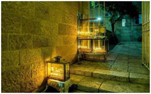 Menorahs in the alleyways of the Old City