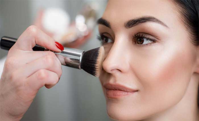 Powder: Use a fan or fluffy brush, sweep lightly, and blend.