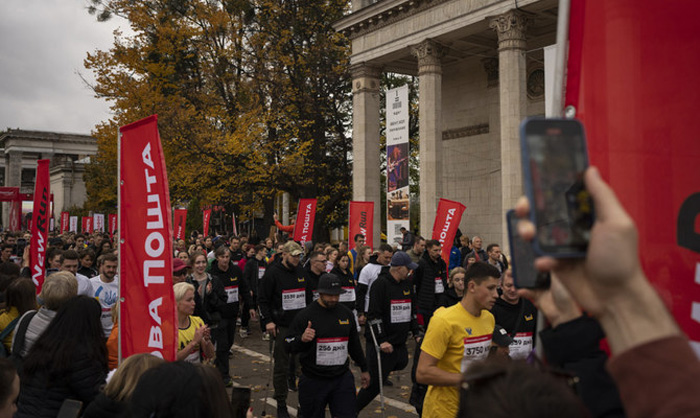 Around 2,000 Ukrainians ran a one-kilometer race on Sunday in Kyiv, wearing bibs displaying the name of a person instead of a number.