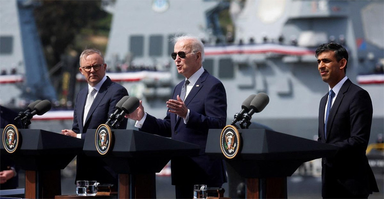 Addressing a ceremony at the U.S. naval base in San Diego, accompanied by Australian Prime Minister Anthony Albanese and British Prime Minister Rishi Sunak, U.S. President Joe Biden called the agreement under the 2021 AUKUS partnership part of a shared commitment to a free-and-open Indo-Pacific region with two of America’s “most stalwart and capable allies.”